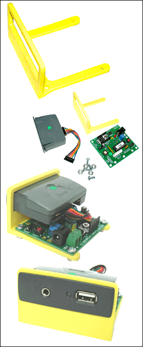 ![]() Board Size approx. 4-1/2 L" x 3-1/8" W x1" H LED Status lights and PWM servo connector |
